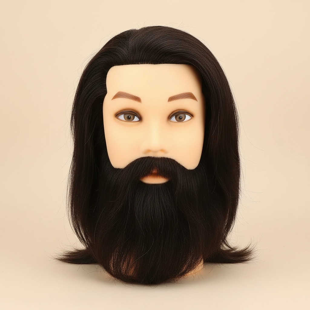 Tête À Coiffer Mannequin Homme Barbe Cheveux Humains