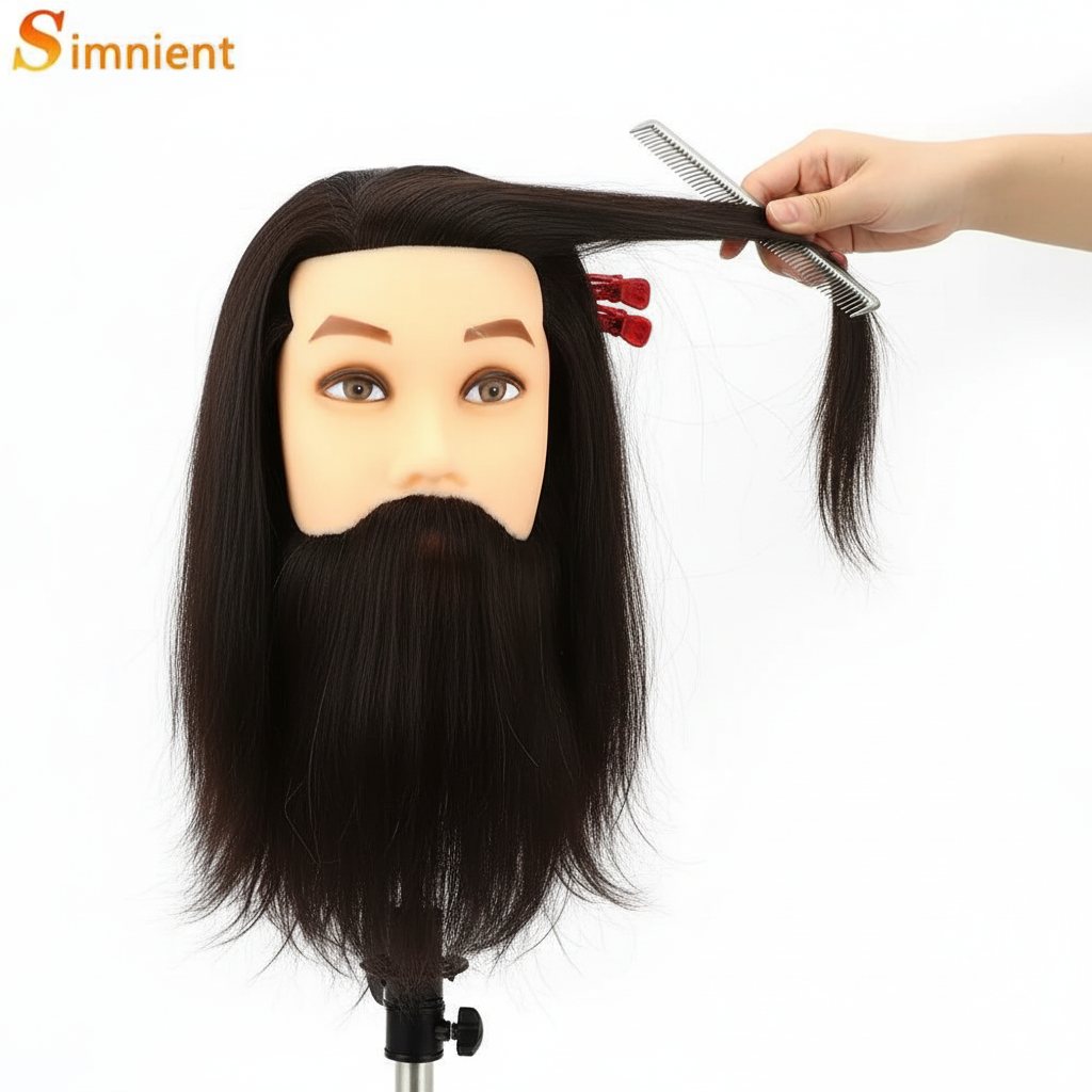 Parfaite pour l'apprentissage et le perfectionnement, cette tête à coiffer mannequin homme avec barbe et cheveux humains offre une expérience de pratique réaliste.