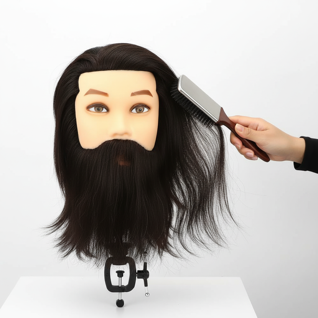 Découvrez la qualité et le réalisme de notre Tête À Coiffer Mannequin Homme Barbe Cheveux Naturels. Parfaite pour s’entraîner à la coiffure, développer sa créativité et réaliser des styles variés comme en salon professionnel.